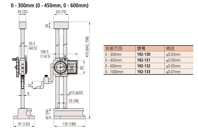 产品:日本三丰Mitutoyo双柱带表高度尺192-130划线高度尺