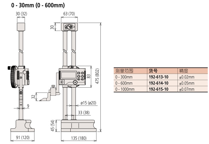 产品:日本三丰Mitutoyo双柱数显高度尺192-613 614 615划线高度尺